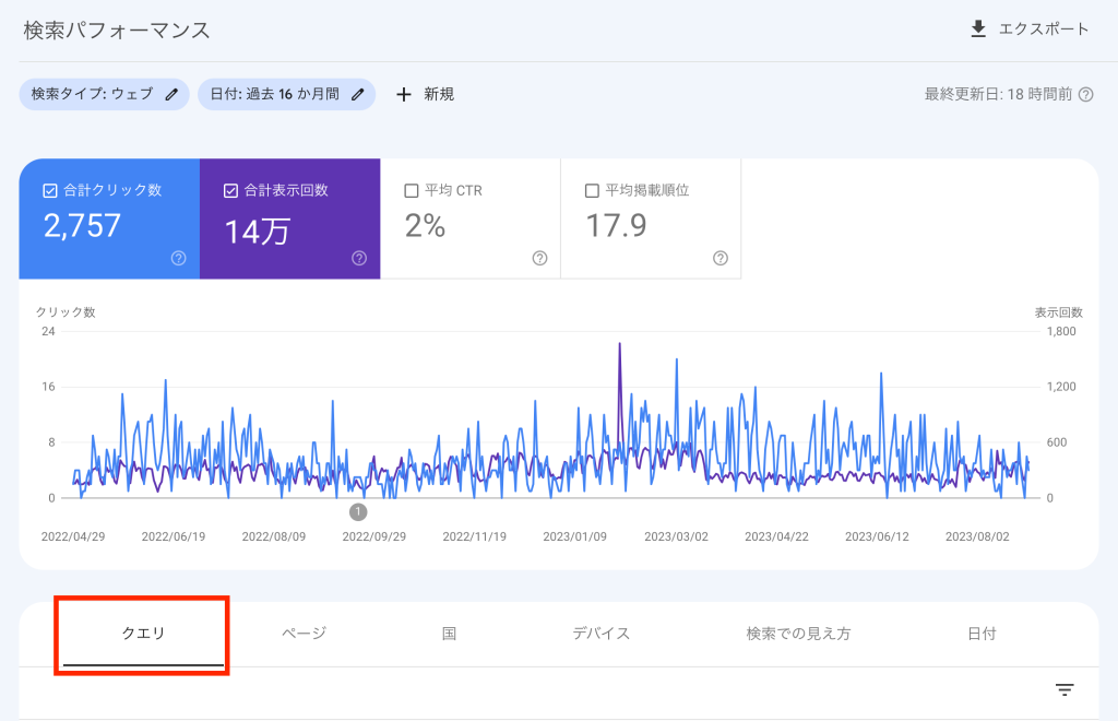 GSCの検索パフォーマンス初期画面で表示されるのが、クエリデータです。