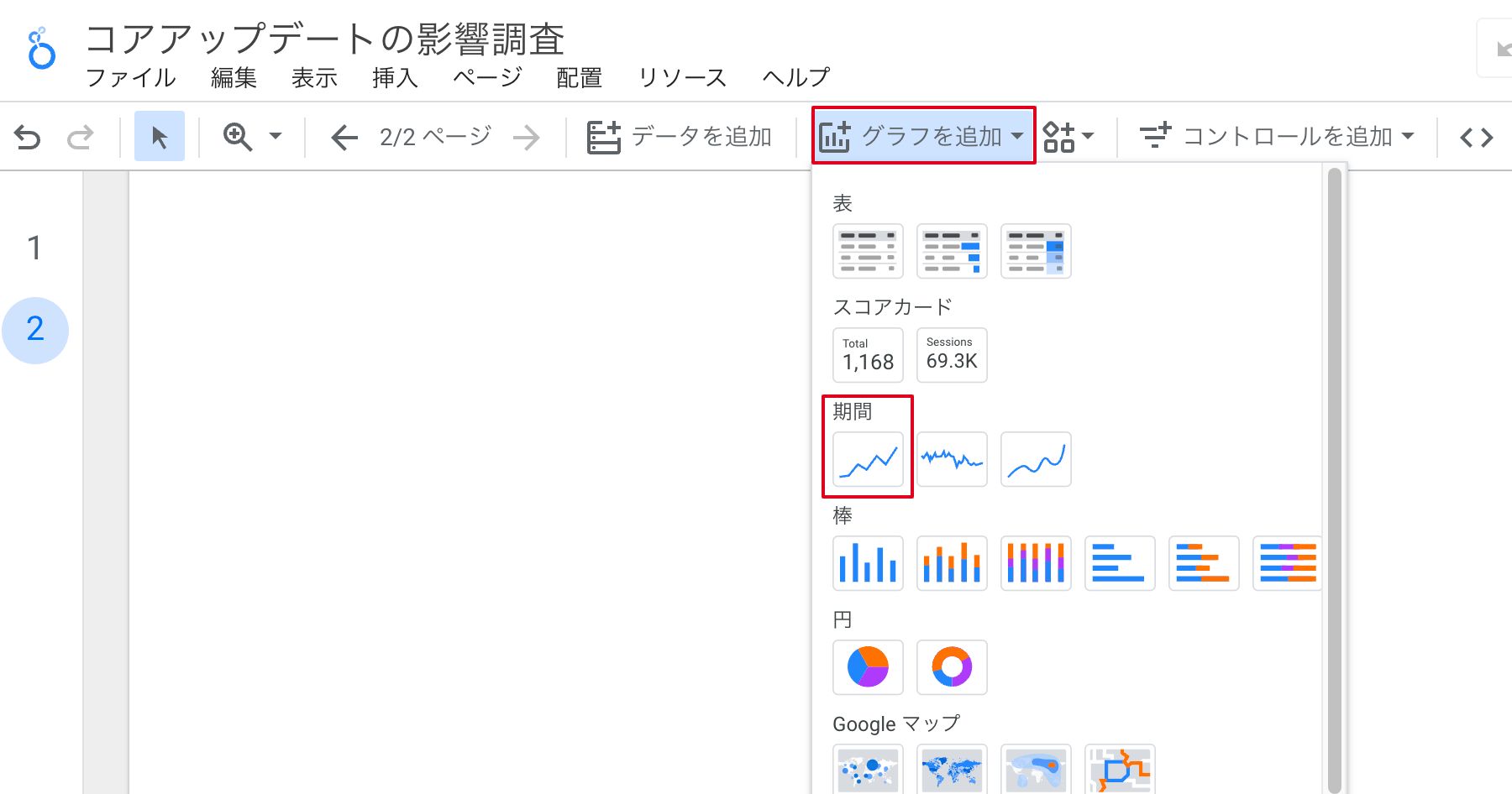 ①上部メニューの「グラフを追加」から期間グラフを選択します。