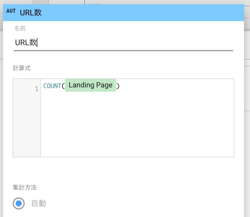 計算式の入力ができるようになるので、「COUNT(Landing Page)」と入力し「適用」をクリックします。