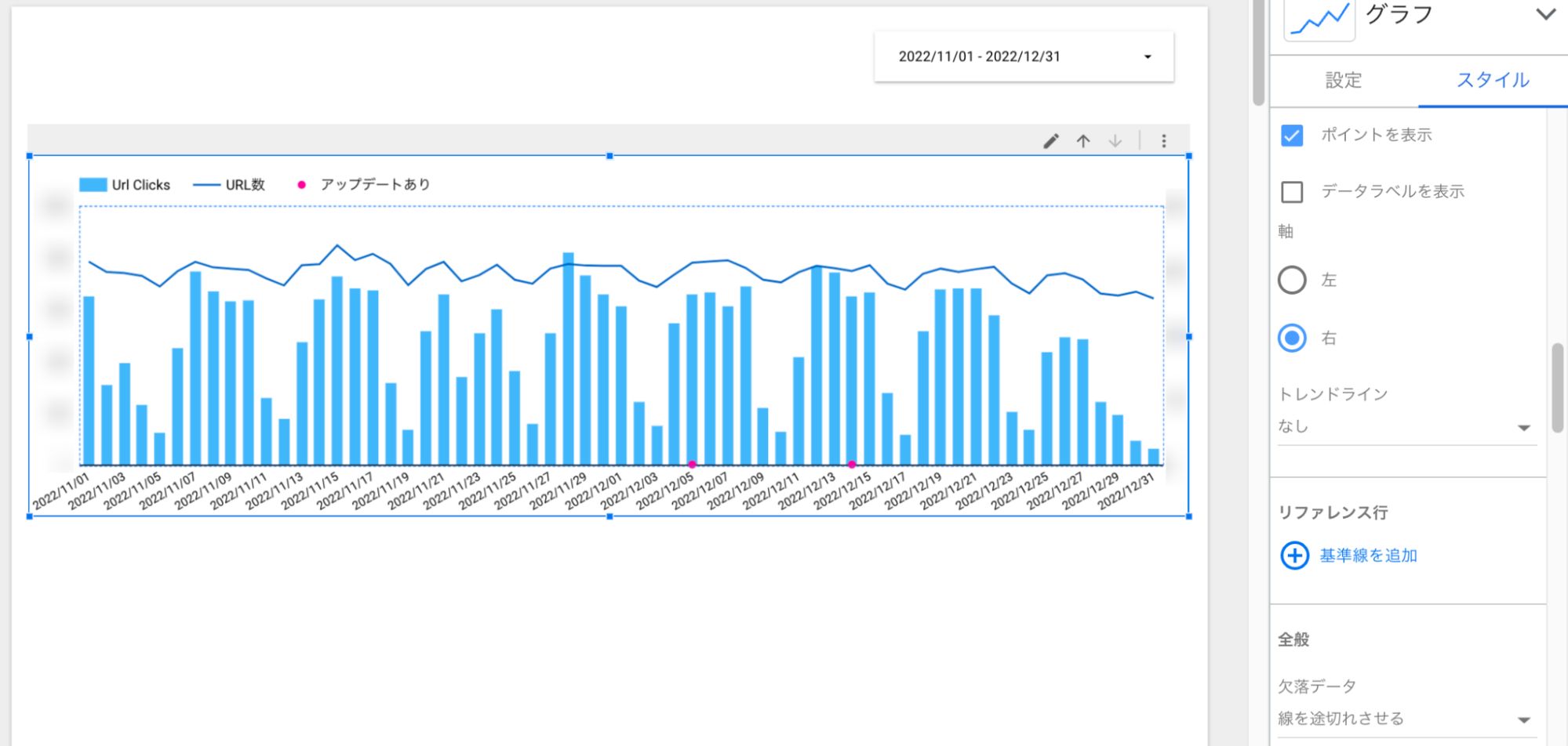 - 系列2(URL数):折れ線グラフ、軸は左