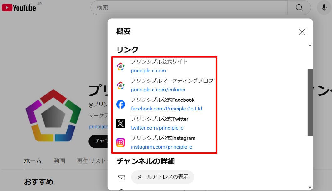 弊社公式YouTubeチャンネルのプロフィール欄
