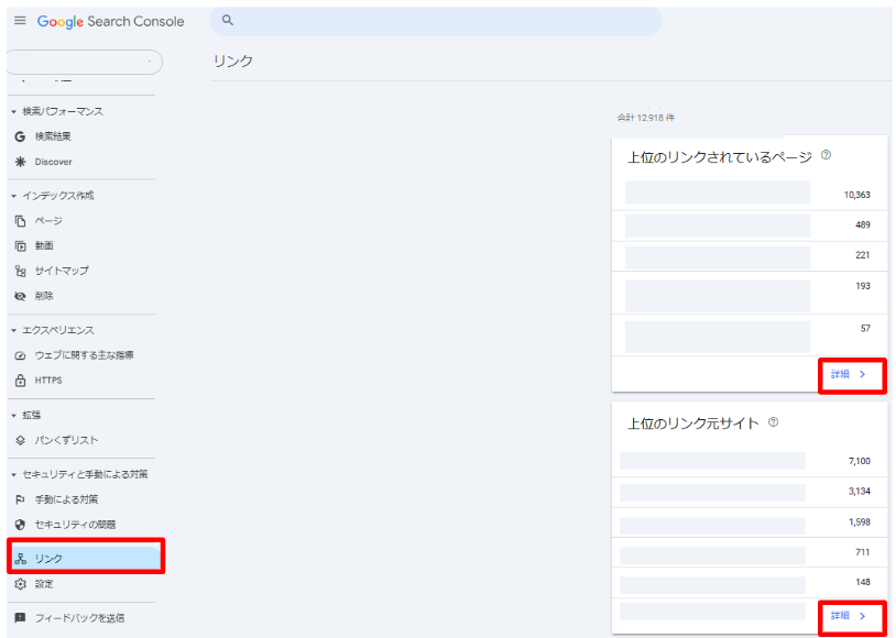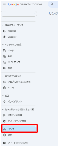 Googleサーチコンソールの管理画面の左側のメニューから「リンク」をクリックすると、「外部リンク」と「内部リンク」をそれぞれ確認できます。被リンクは「外部リンク」になりますので、「外部リンク」のところから確認できます。