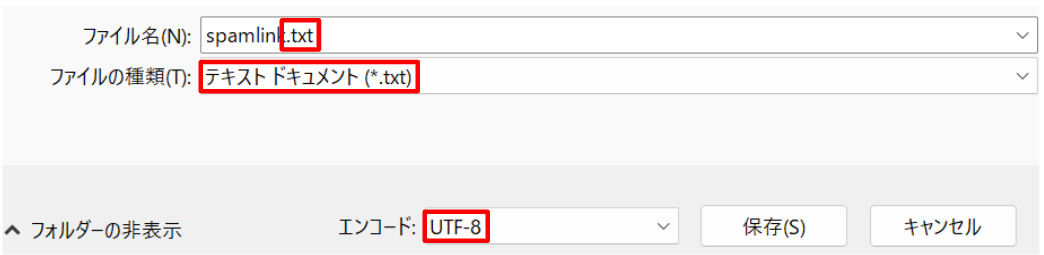 • ファイルの種類は「テキストドキュメント(*.txt)」にする