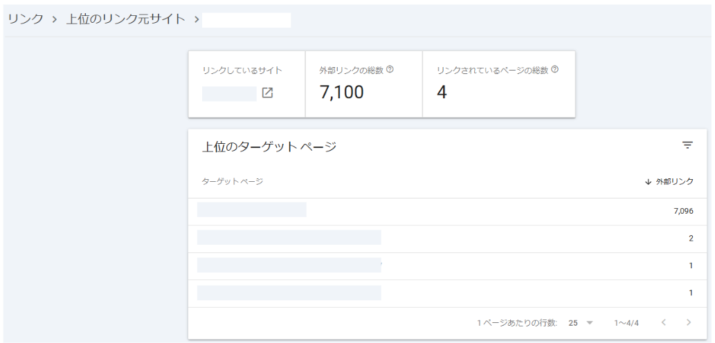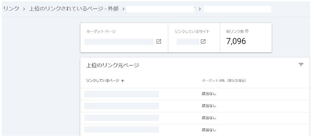 さらにターゲットページをクリックすると、その自社サイトのURLがその外部サイトのどのURLからリンクを貼られているのかを確認できます。