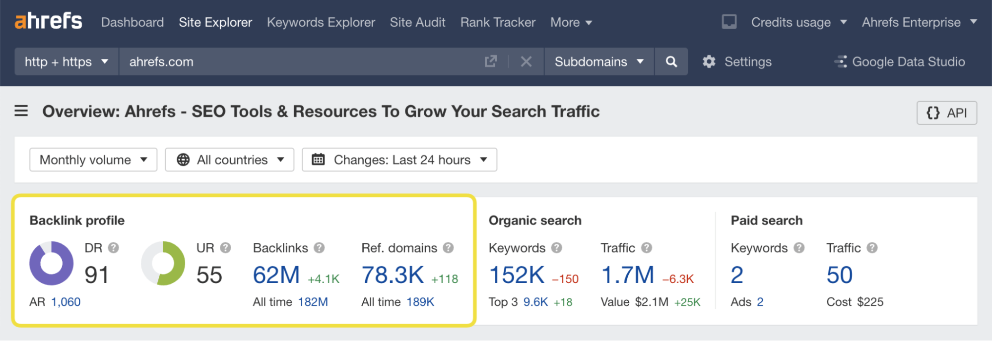 AhrefsはSemrushと同じように、自社と競合他社サイトの被リンク状況を調査できます。
