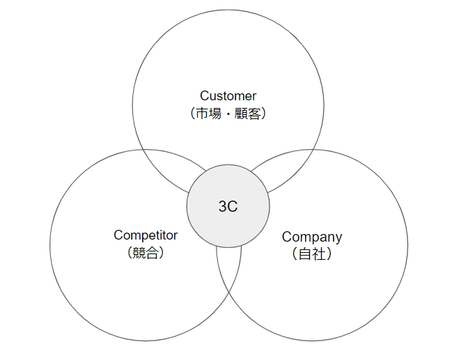 SEO競合調査では「3C分析」Customer(市場・顧客)、Competitor(競合)、Company(自社)というフレームワークを使用することが多いです。