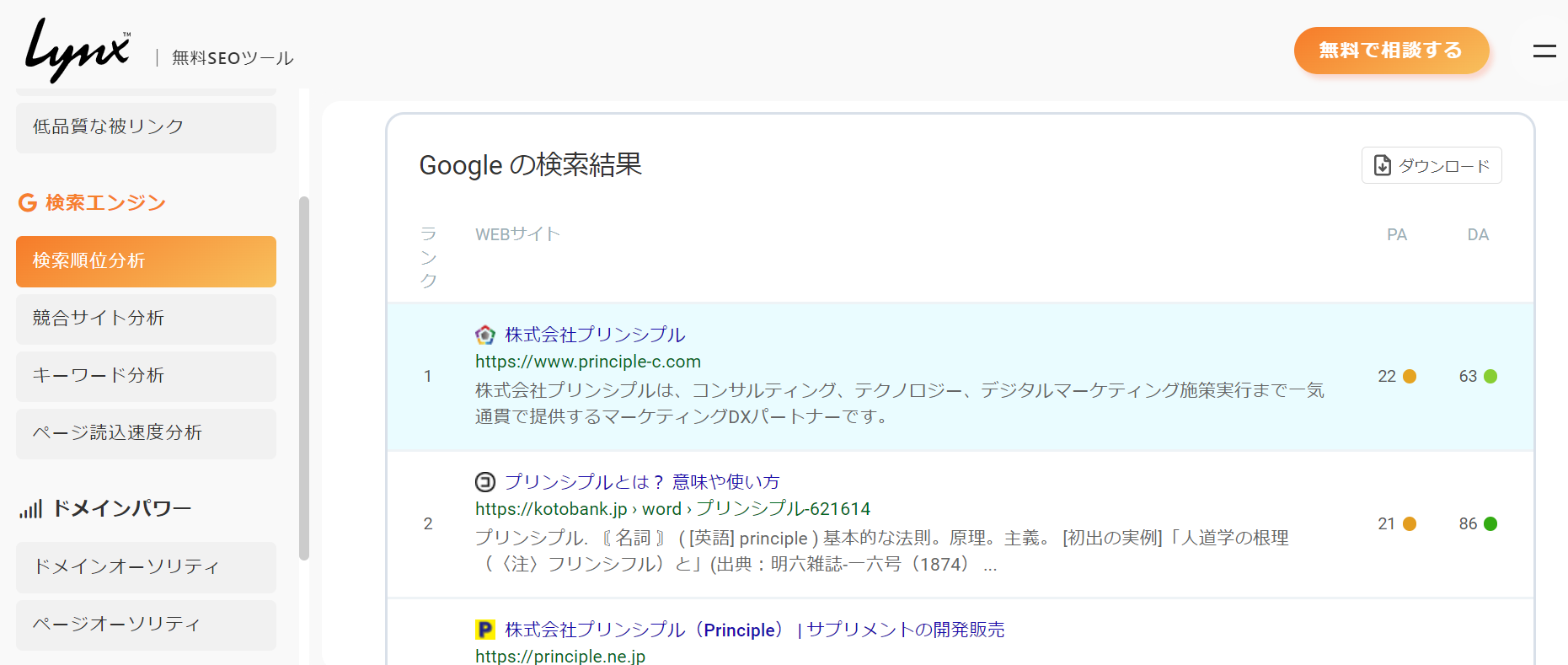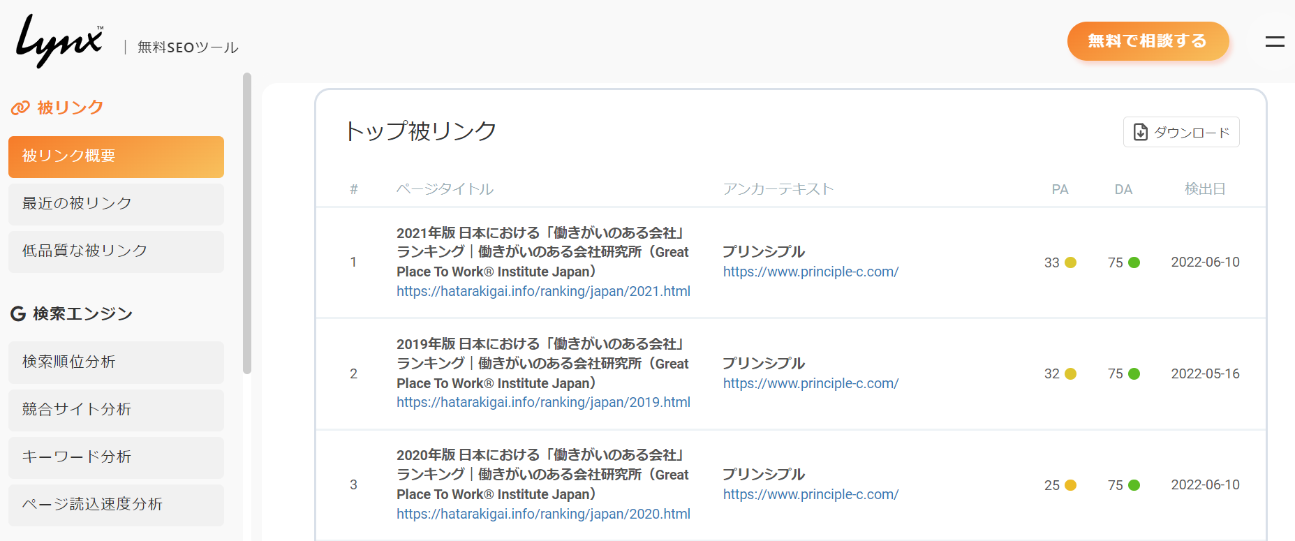• サービスページやコンサルタントプロフィールページで獲得している競合サイトがあるのか?