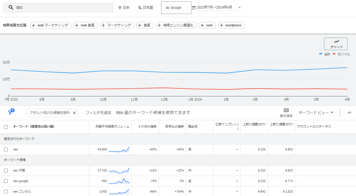 選定したキーワードに十分な検索需要があるかを確認する必要があります。