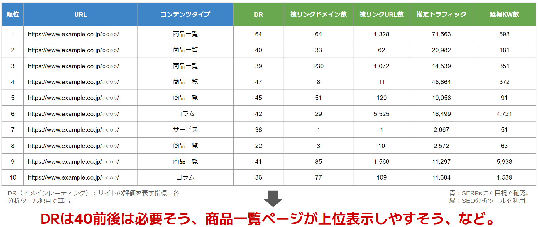 ※DR:ドメインレーティング。サイトのドメインの評価を表す指標で被リンクの質と量を考慮。(SEO外部ツールのよく使われる指標)