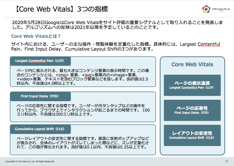 Core Web Vital(サイト内における、ユーザーの主な操作・閲覧体験を定量化した指標)が重要シグナルとして追加されることが5月にGoogleから発表されました。
