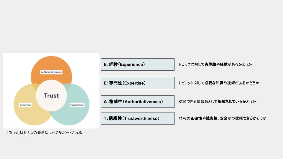 最近では、”どのような専門性・経験のある「人物」によって書かれたコンテンツなのか” がより重要視されています。