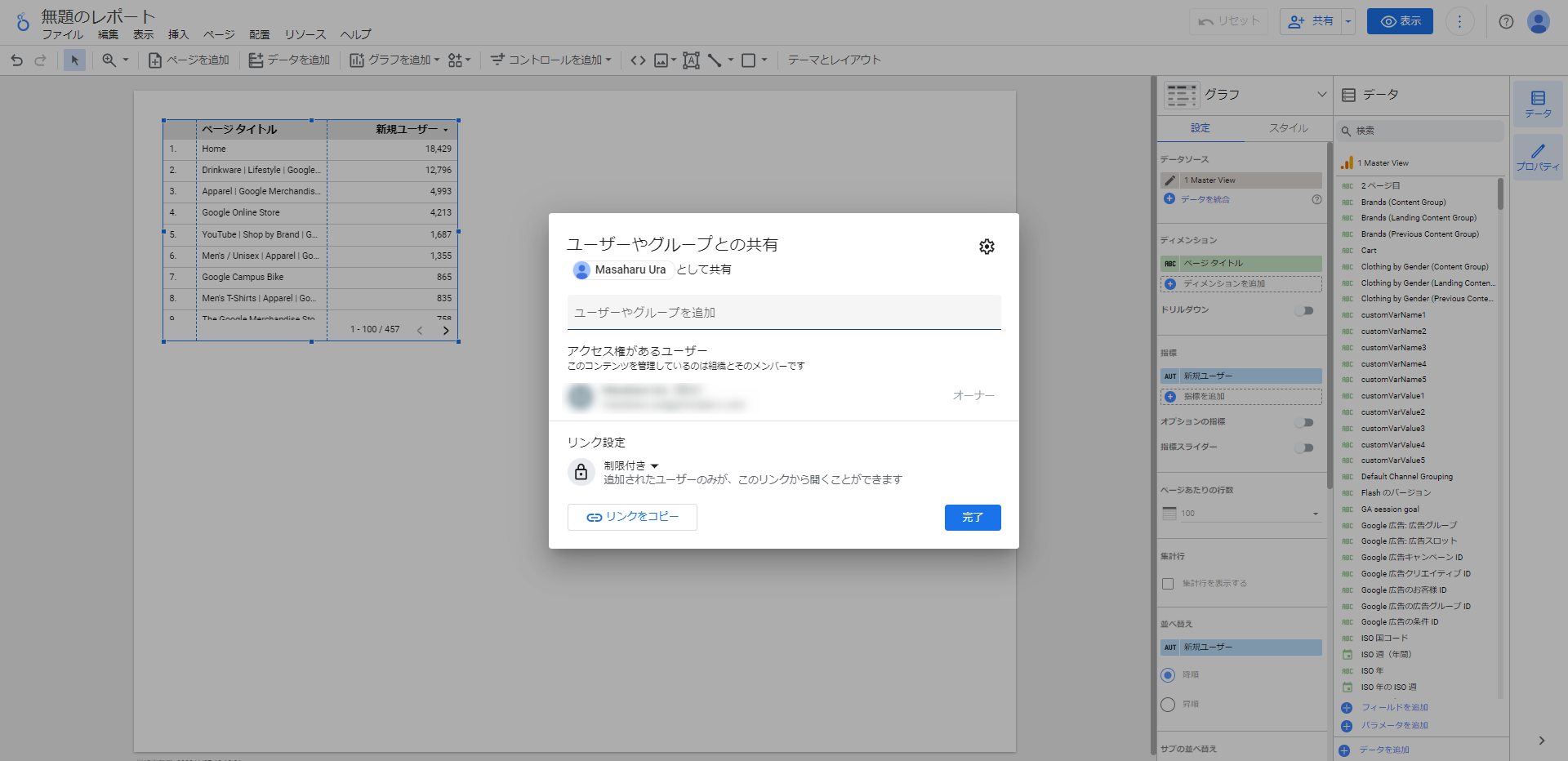 Looker Studio:リンクによる共有
