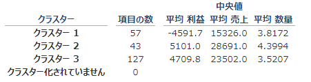 | クラスター3 | 利益と売上はクラスタ内で平均的 | 中間グループ |
