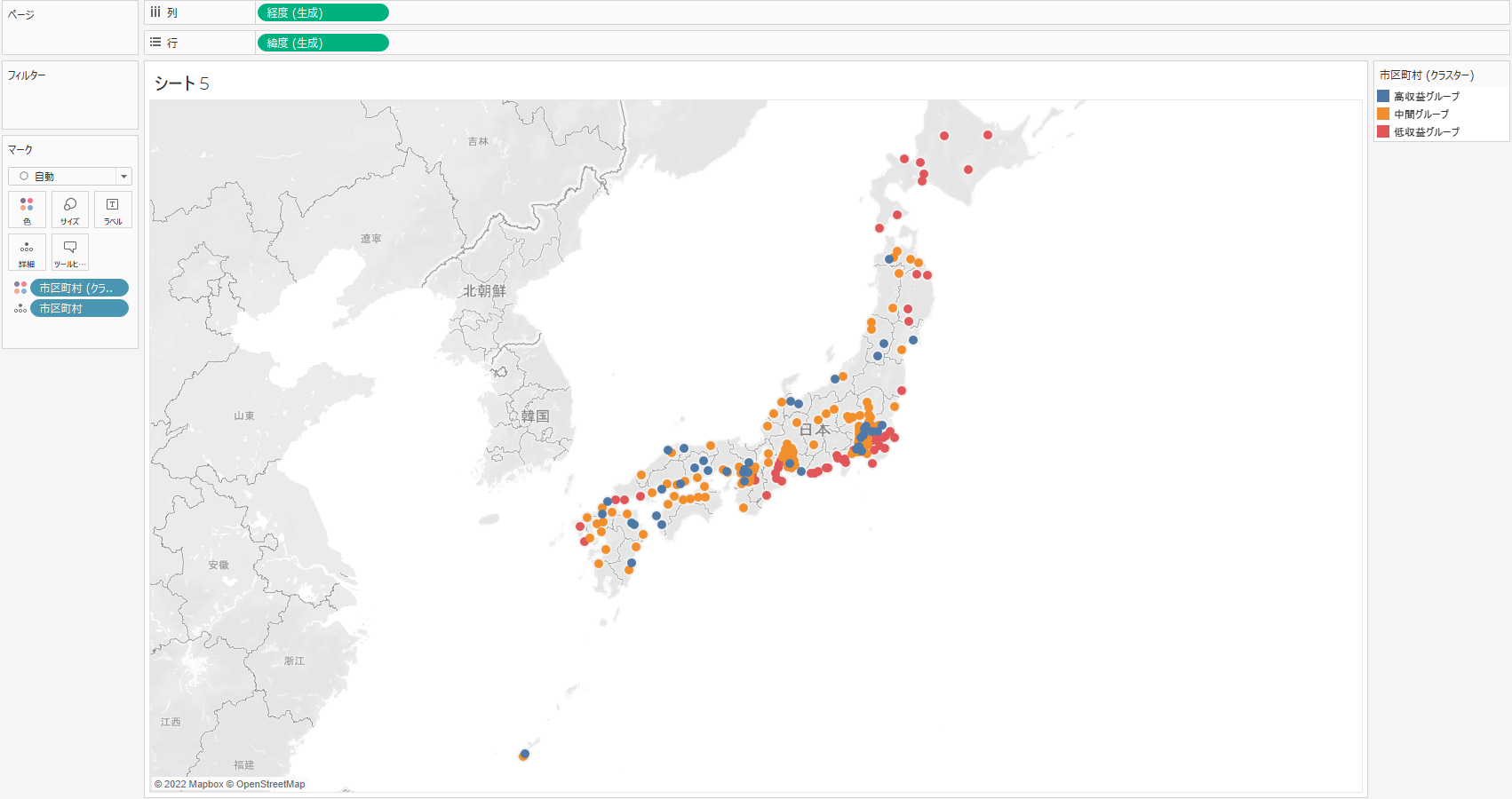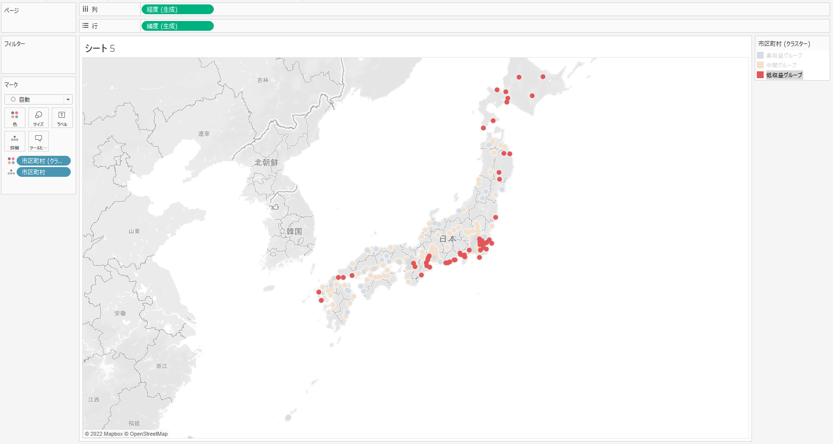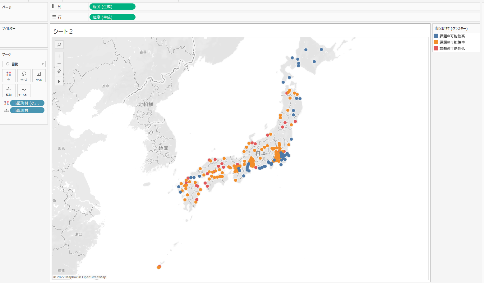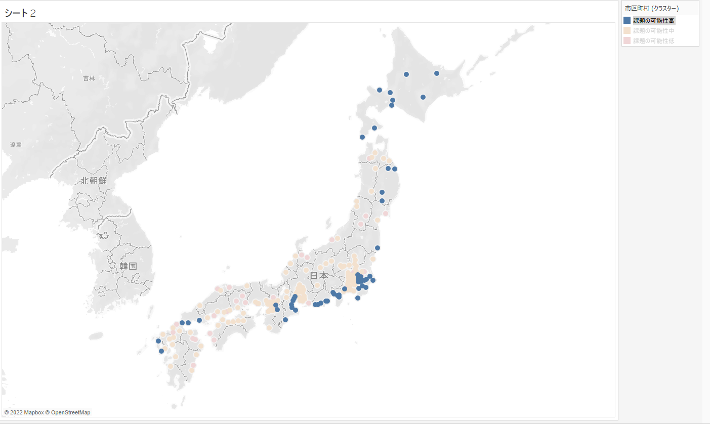 データの表示方法を地図に変更することによって、課題がある可能性が高い市区町村は千葉県に集中しているという事が読み取れました。このように、問題を追及していく一つの糸口として、クラスタリングを利用することができます。
