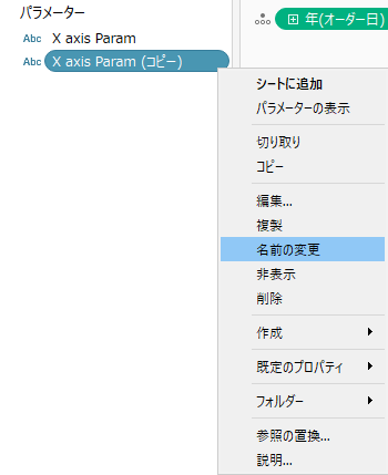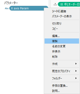 X axis Paramのメニューから「複製」をクリック。