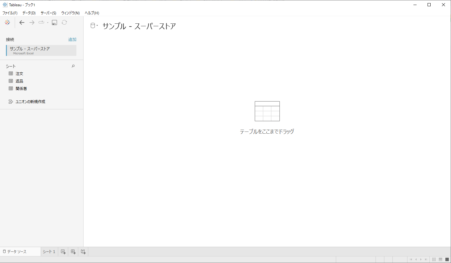 手順1. TableauDesktopを起動し、「サンプル – スーパーストア」に接続