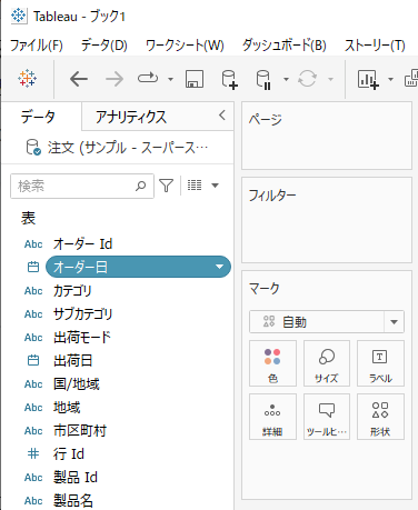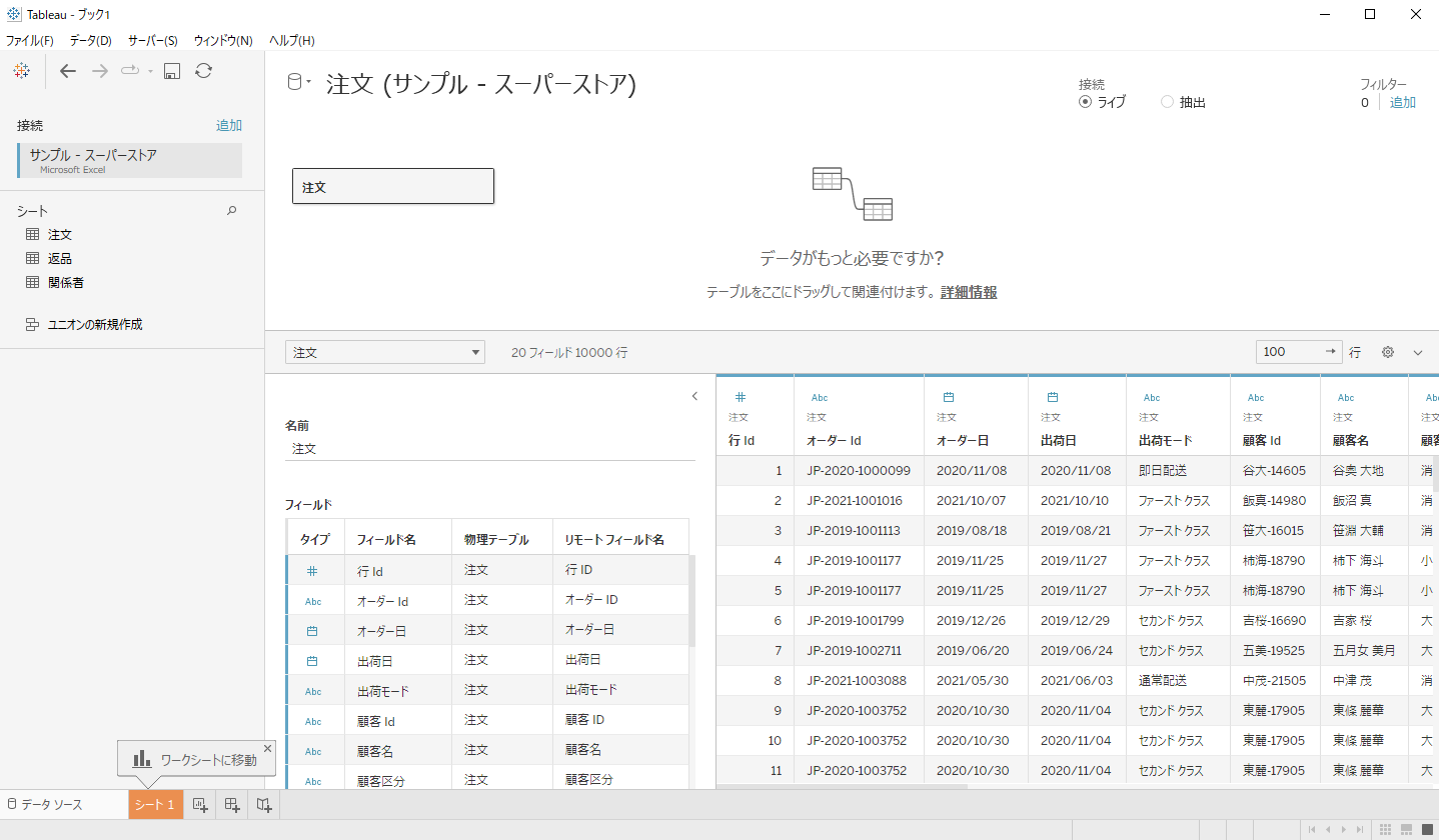 手順2. 「注文」テーブルをドラッグ&ドロップ