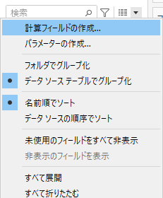 データペインのメニューから「カスタム計算フィールドを作成」をクリック
