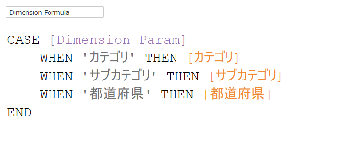 | Dimension Formula | Dimension Paramで指定したディメンションを表示するフィールド |