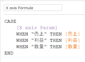 | X axis Formula | X axis Paramで指定した値を表示するフィールド |