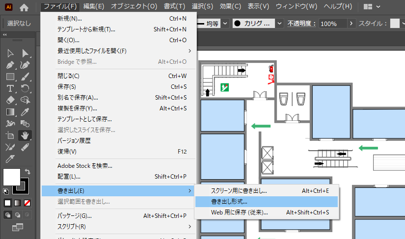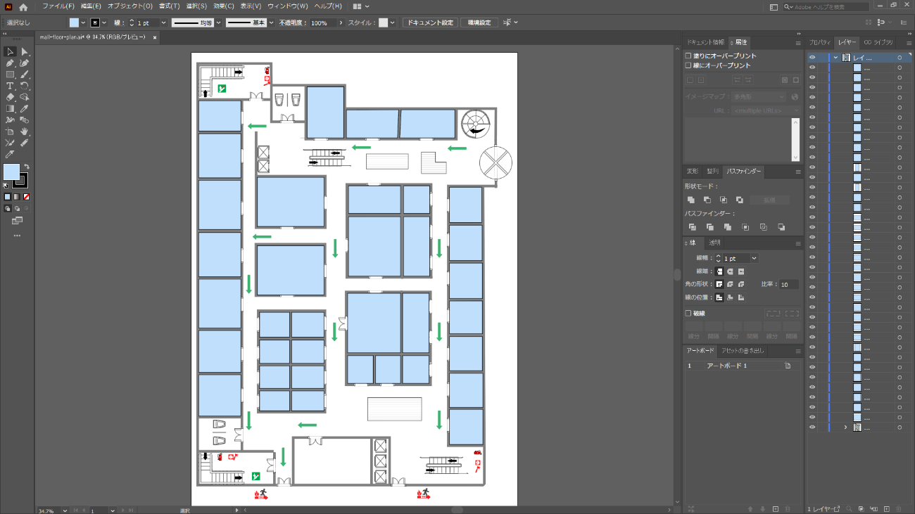 フロアマップの多くがAdobe Illustratorで作成されていると思いますので、ほとんどの施設で今回の手順が使えると思います(前回はなぜこの方法を使わなかったのかと言うと、フロアマップファイルが条件を満たしていなかったからです)。
