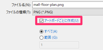 アートボードが1枚の場合でも、「アートボードごとに作成」にチェックを入れてください。