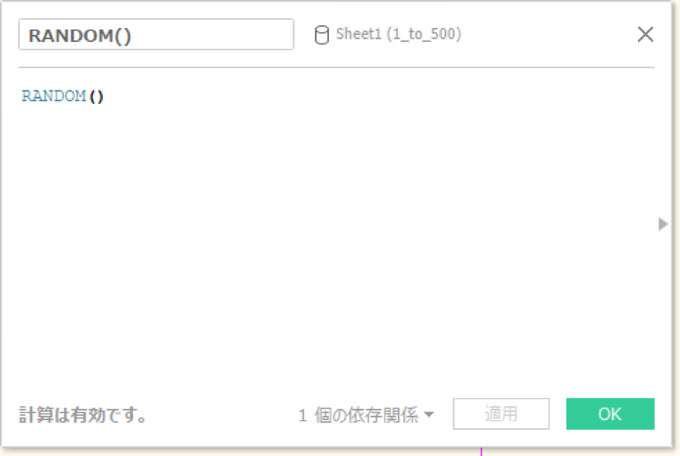 Tableauの公式ヘルプの関数の項目には掲載されていませんが、TableauにはRANDOM()という関数があります。公式には認めていない関数ということで、いわば「隠し関数」になっています。