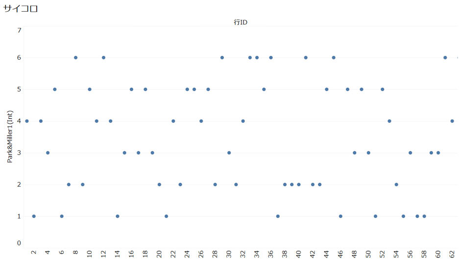 程よく散らばっているように思います。これで、「かなりでたらめ」でかつ、「再現性がある」疑似乱数をTableauで発生させることができました。