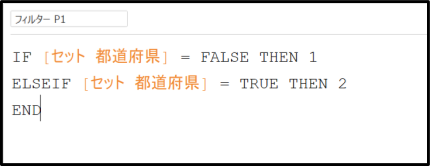 ELSEIF [セット 都道府県] = TRUE THEN 2
