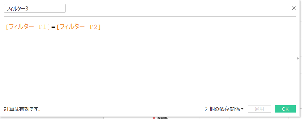 [フィルター P1]=[フィルター P2]