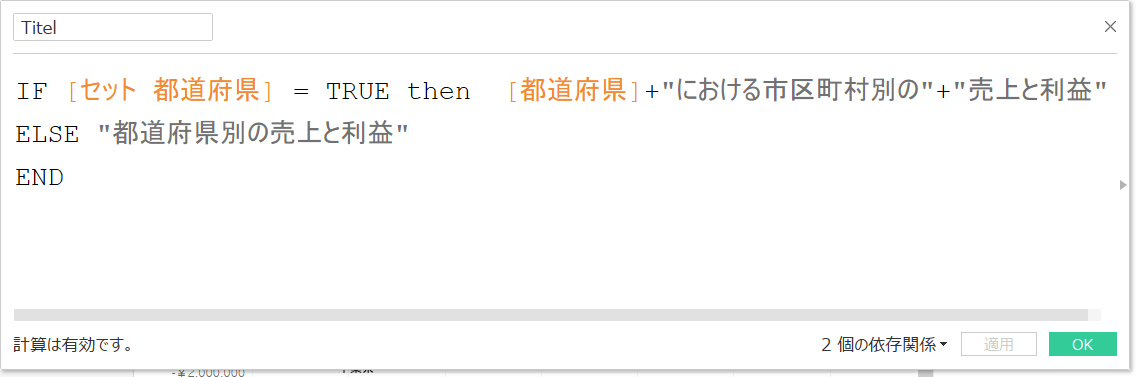 タイトルに以下の計算式を組んだ指標を入れると、タイトルも動的に変化します。