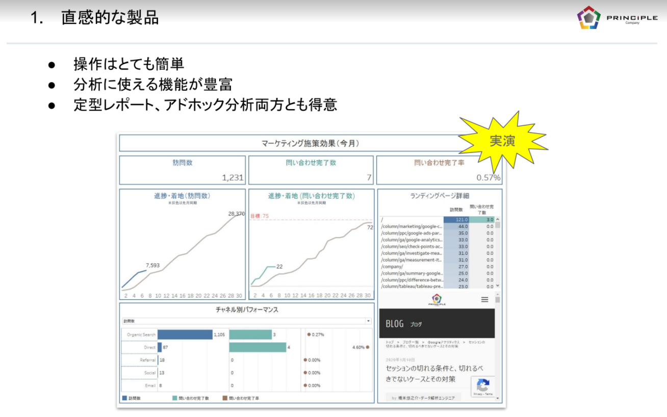 第1部ではプリンシプルからエリスが登壇し、Tableauを操作しながらのセミナーとなりました。