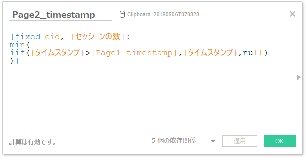cidとセッションの数をLOD計算のfixedで固定すれば「特定のセッション」が指定されますので、そのセッションの中で最小のタイムスタンプを取り出せば第一ヒットのタイムスタンプが取り出せます。