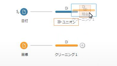 「クリーニング1」を「クリーニング2」の上に重ねて、結合を選びます。