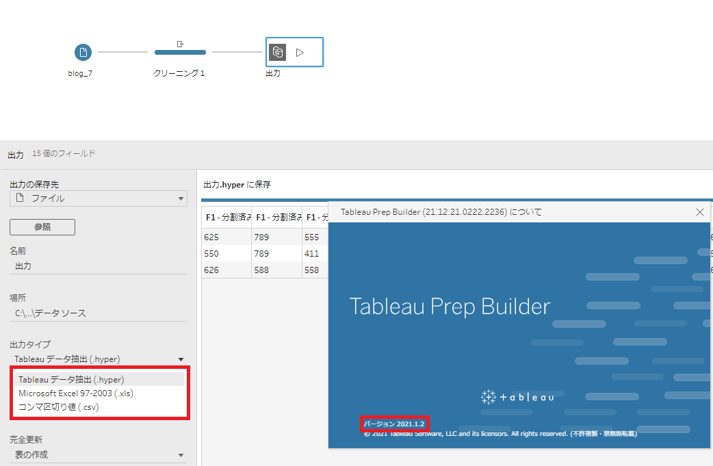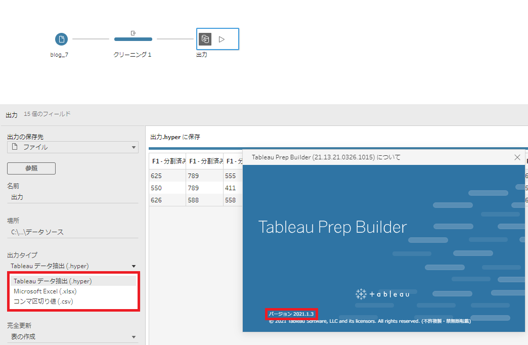 Excel形式で出力を行いたいものの何かの事情でTableau Prep Builderを最新バージョンまでアップデート出来ない場合、上記をバージョン検討の参考にしていただければ幸いです。