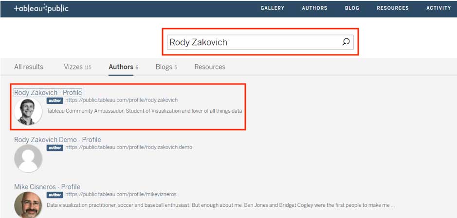 - Tableau Publicにてチャレンジ出題者名を検索します。