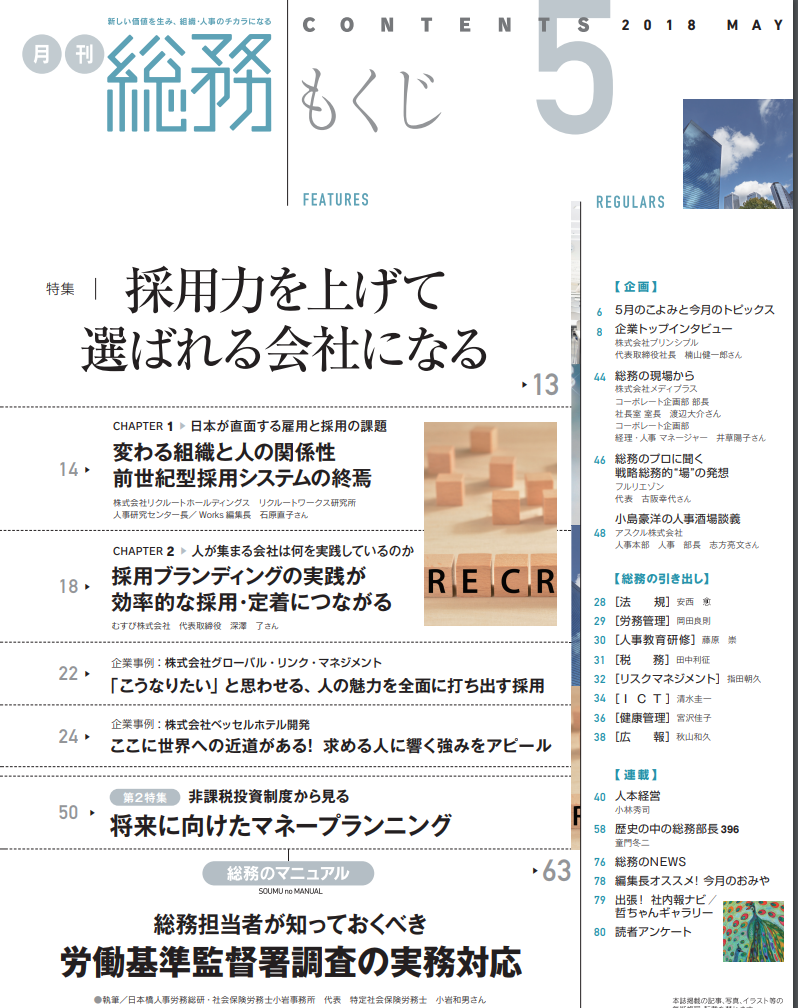 『月刊総務』5月号の企業トップインタビューに社長楠山が掲載されました。