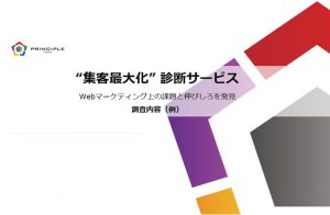 診断は、担当したプリンシプルのコンサルタントが直接企業に説明するため、診断を受診した企業は他社と比較した自社のWeb集客の強み弱みについて簡単な相談でき、無料でありながらも簡易的なコンサルティングを受けることにもなります。