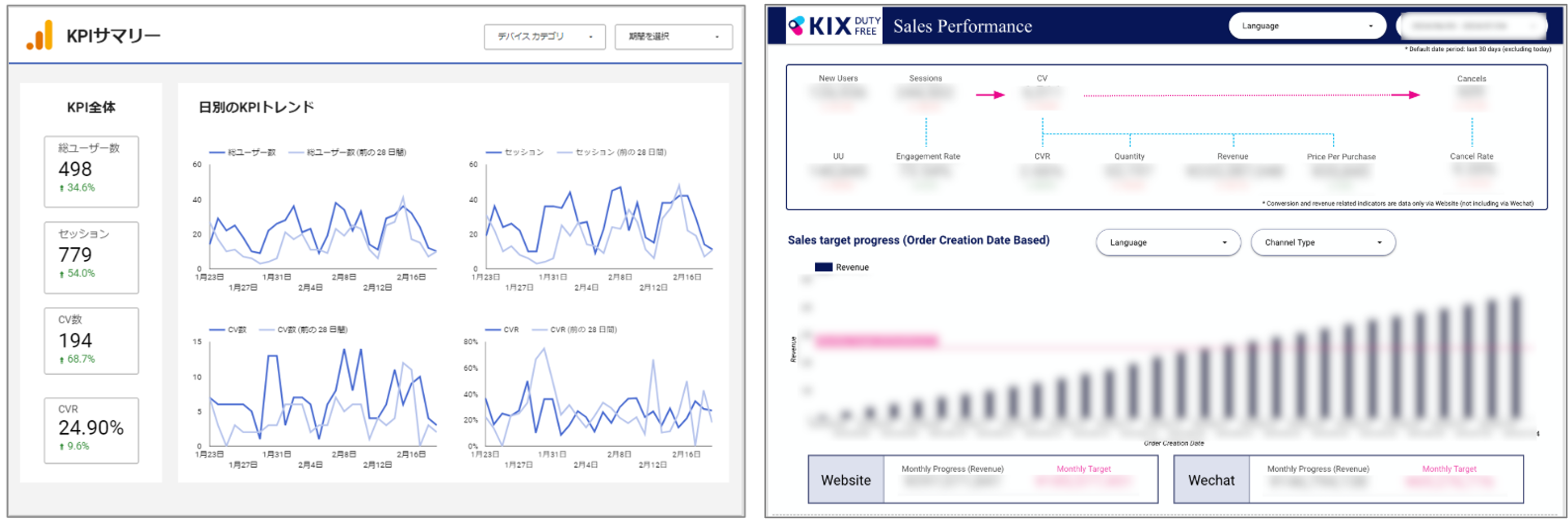 ▼深堀分析用:フィルタを複数設けて、担当者が数値の変動の特定や、マーケティング施策の効果分析できるようにします。