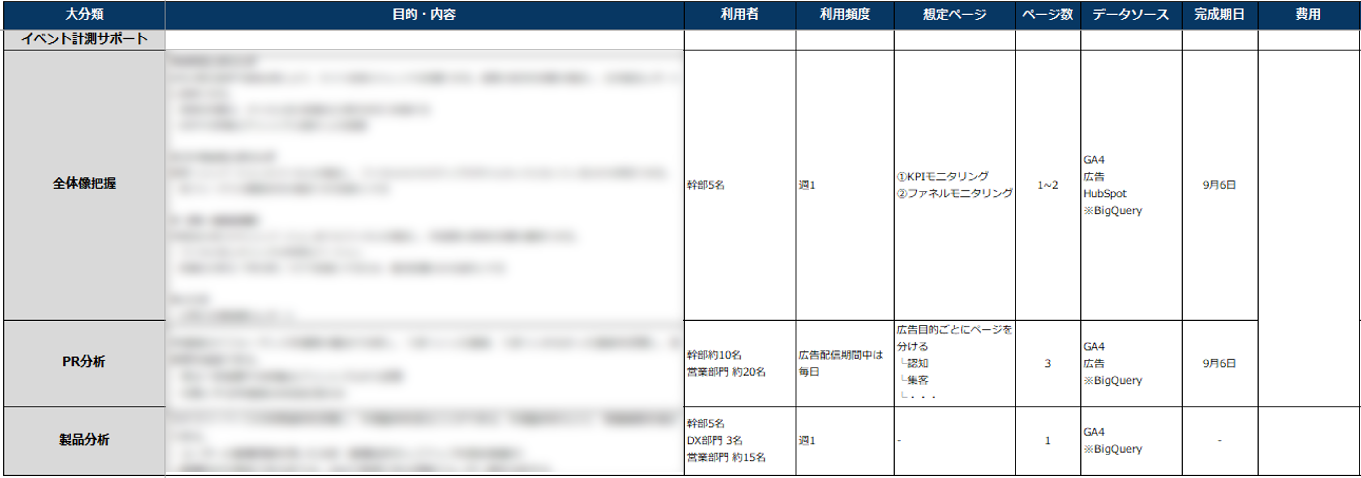 データ利用用途を整理し、実現に向けて技術要件を確認の上、要件定義をドキュメントに纏めます。