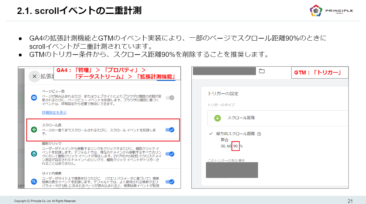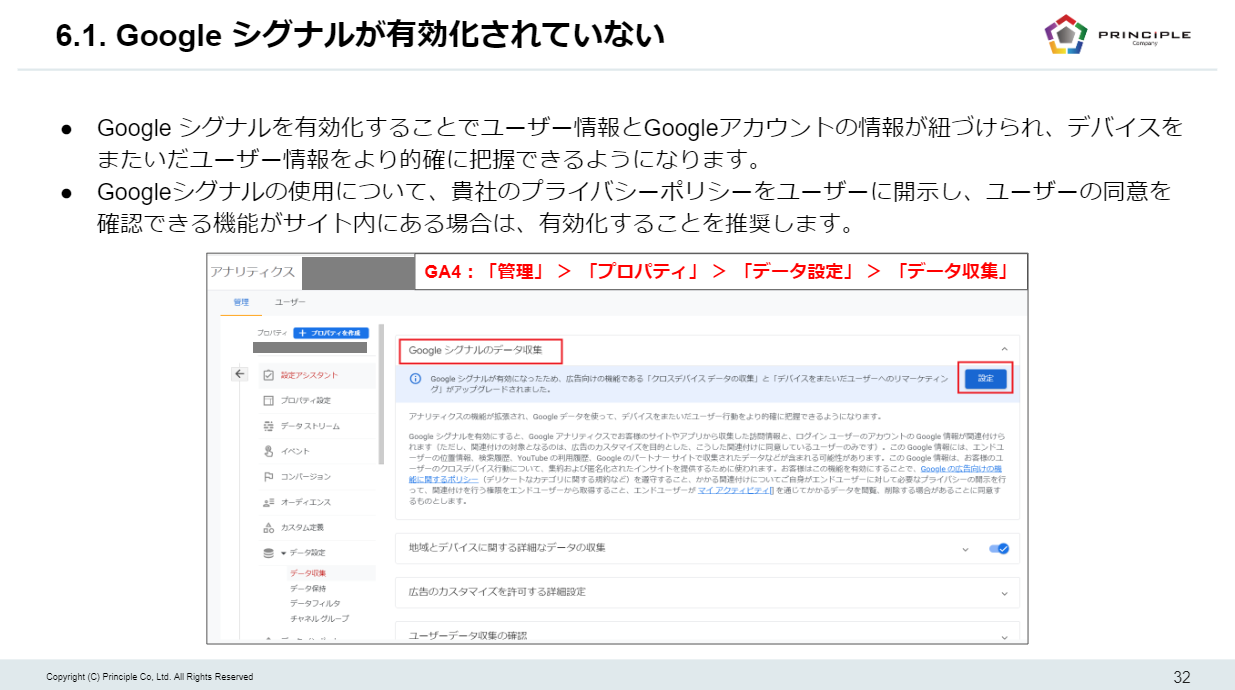 具体的な不備や改善点を指摘し、設定状況を客観的にスコアリングして、戦略的なデータ活用に向けた提案を行います。